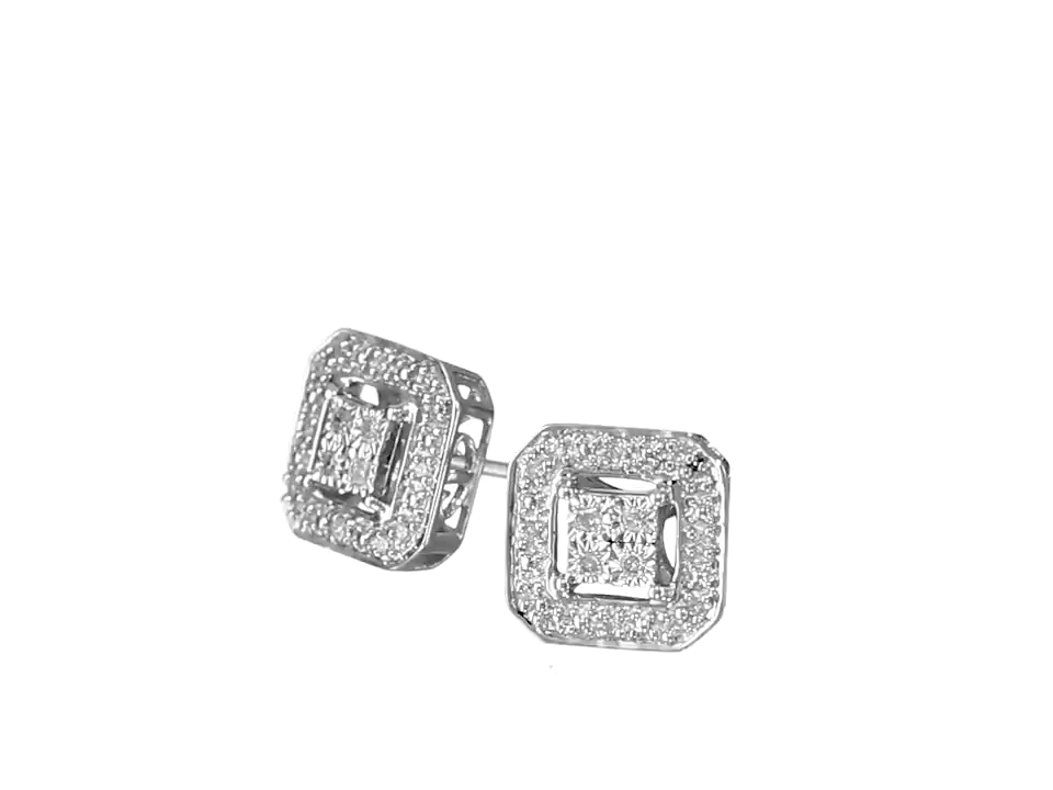 Sterling Silver Diamond Square Shape Stud Earrings (1/10 cttw, I-J Color, I2-I3 Clarity)