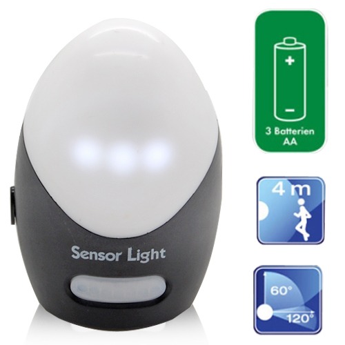 Battery Powered Motion Detector Infrared PIR Wireless Sensor 3 LED Lights Lamp