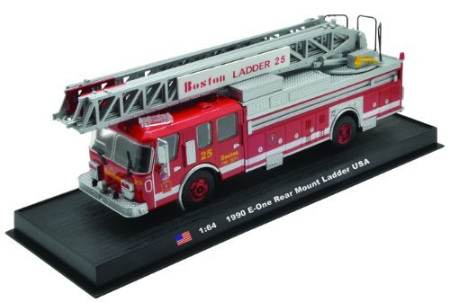 -. Title : E-One Rear Mount Ladder Boston Fire Truck 1990 Diecast 1:64 Model (Amercom GB-15)