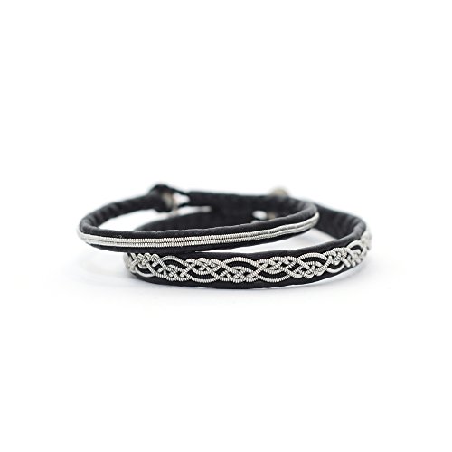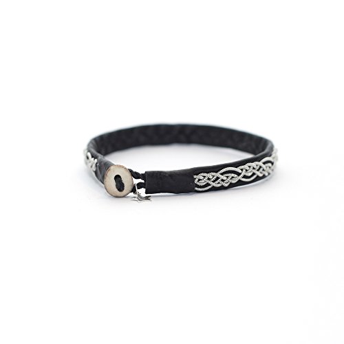 -. Title : Black sami bracelet, swedish bracelet, black leather, metal braid, eco-friendly, sami laponia -Custom size