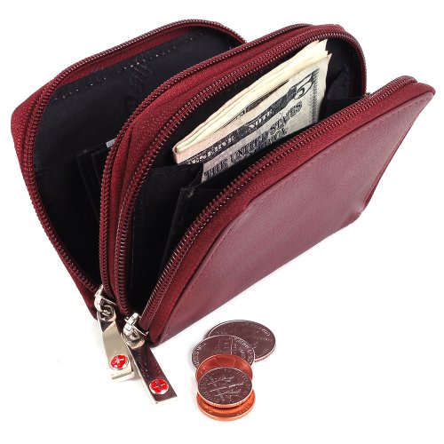 Mini Leather Organizer WalletBy Alpine SwissProduct Features:2 zippered pockets, Measures 4.5" x 3" x 1.5"Outside ID windowBack pocket opens and expands accordion style with 2 sectionsFront pocket expands same way has 6 separate sectionsFront pocket also has 5 Card slots between the sectionsFun ColorsAlpine Swiss QualityMade of Genuine LeatherMSRP $45.00 Alpine Swiss donates 2500 meals every day to hungry children in the U.S. and around the world through our partnership with Children's Hunger Fund. These meals are hand delivered in a Food Pack, which will contain enough food to feed a family of 4-5 for a week to the homes of the needy by trained volunteers in their community, establishing relationships that foster genuine care. Your purchase fuels this effort! Thank you!Feature