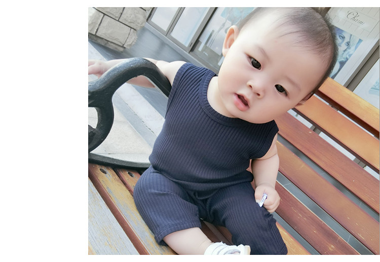 婴儿夏装新生儿衣服6-12个月男女童简约背心爬服潮新款宝宝连体衣