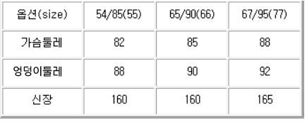 치수총 길 이 : 74.5Cm어 깨 폭 : 38Cm가 슴 폭 : 54Cm밑 단 폭 : 55Cm소매길이: 56Cm허 리 폭 : 54.5Cm54 사이즈 기준