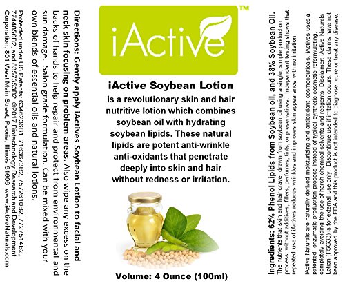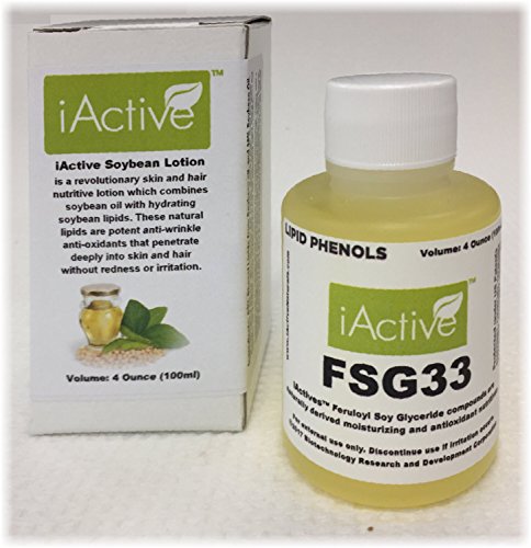 FSG33 Soybean Anti-wrinkle Antioxidant Lipid Lotion for Skin and Hair, 4 Oz., iActive Naturals Soybean Phenol-lipids in Natural Soybean Oil