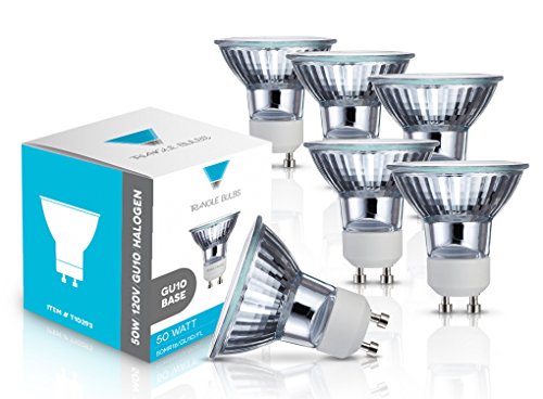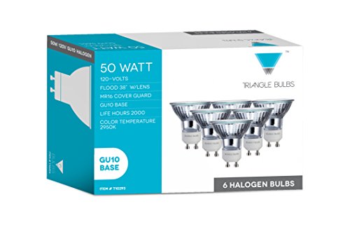 Triangle Bulbs T10293-6 (6 pack) - 50 Watt, GU10 Base, 120 Volt, MR16 With UV Glass Cover, Halogen Flood Light Bulb, Q50MR16/FL/GU10, 6 Pack