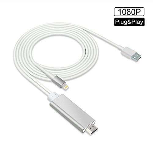 Lightning to HDMI Adapter Cable, Hizek 8pin Lightning Digital AV to 3.3ft HDMI 1080P Cable iphone7/7Plus/6s/6Plus/5/5s(Silver)