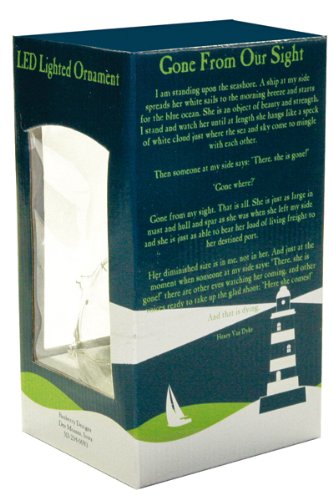 -. Title : Christmas Ornament - Remembrance Ornament Sailboat inside, "Gone From Our Sight" P, Glass, LED Color-Changing, 7.25"H