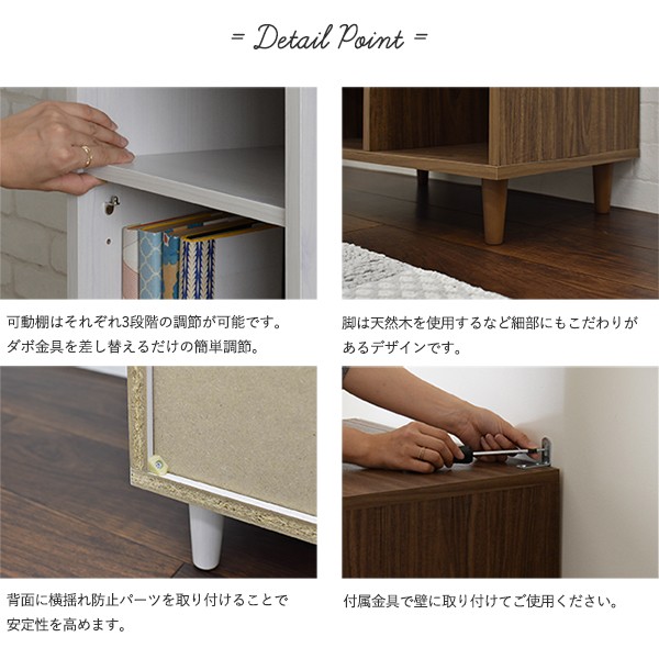 ■商品説明:波ガラスやアンティーク風の取っ手が女性らしく魅力的なリビング収納シリーズ「POWRY(ポーリー)」。定番のブラウンカラーは木目調で優しい雰囲気となっており、さまざまなテイストとコーディネイトしていただけます。収納したものをオシャレに隠せる波ガラスと、レトロな風合いの取っ手がどことなくアンティーク調の雰囲気を漂わせる収納家具です。60cm幅のシェルフです。★移動棚:2枚★耐荷重:[天板]15kg、[移動棚]5kg★組立時間:約45分/2人(*お客様組立商品になります。工具はお客様にてご用意いただいております。)※組立時間はあくまで目安となります。■サイズ・容量商品サイズ:W600×D398×H902mm商品重量:15kg内寸:[オープン部]W272×D379×H372mm×4ヵ所梱包サイズ:W860×D440×H145mm梱包重量:17kg■規格[本体]プリント紙化粧板[脚]天然木■キーワードシェルフ 棚 木製 オープンラック 幅60 POWRY ポーリー 収納ラック リビング収納 アンティーク 本棚 ホワイト ブラウン リビング PW90-60S