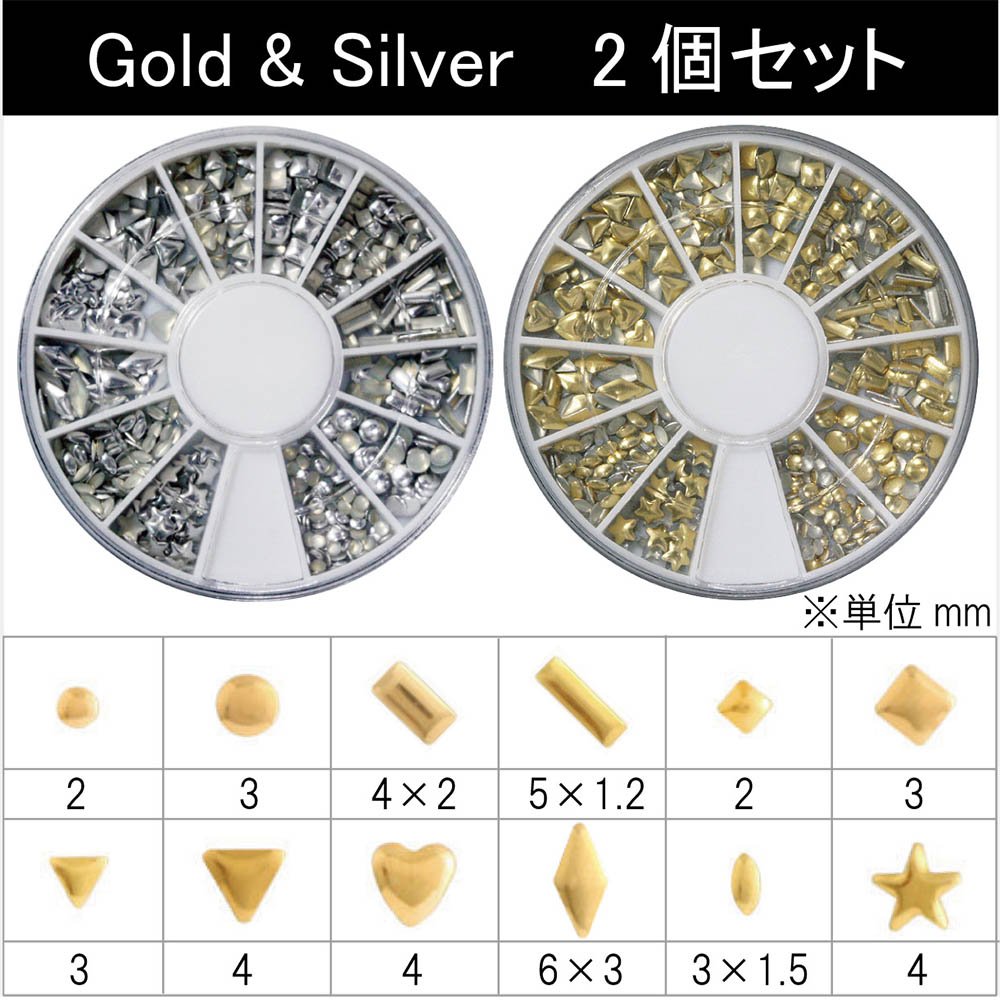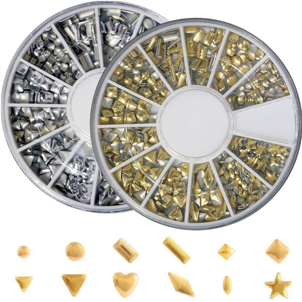 Metal studs 12 different nail for Gold & Silver Round Case input two / set