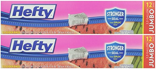Hefty Slider 2.5 Gallon Jumbo Storage Bags, 12 Count (Pack of 2) Total 24 Bags