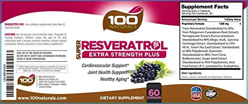 100 Naturals Super Resveratrol 1200mg with Pomegranate,green Tea, Quercetin, Grape Seed Extract, Acai, Lactobacillus Acidophilus