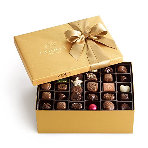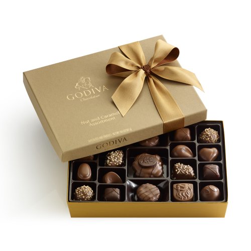 -. Feature : Godiva Ultimate Chocolate Gift Tower / Includes: 105 pc. Gold Ballotin, 19 pc. Nuts & Caramel Gift Box, 24 pc. Signature Chocolate Truffles Gift Box, 15 pc. Milk Chocolate Gift Box, 12 pc. Dark Chocolate Truffles Gift Box, 8 pc. Gold Ballotin, 4 pc. Signature Chocolate Truffles Gift Box / Tower wrapped in a brown ribbon / 5 lbs. 11.1 oz.