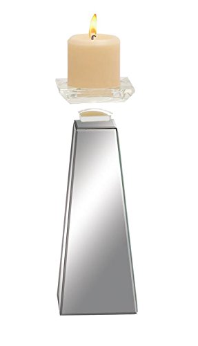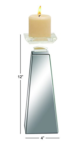 Deco 79 Wood Mirror Candle Holder, 4 by 12-Inch, Silver