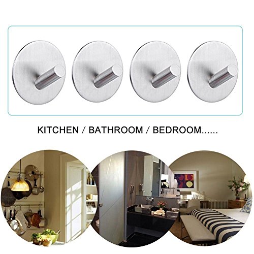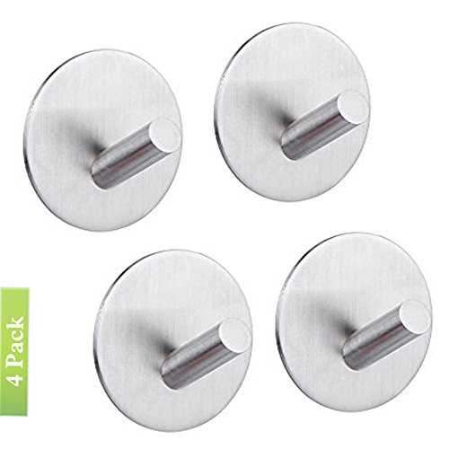 3M Self Adhesive Hooks, Heavy Duty Stainless Steel Key Robe Towel Hooks, Wall Mount Coat Hook Hat Hook, Waterproof, Rustproof for Kitchen Bathroom Toilet Lavatory Closets Organizer(Pack of 4) (D)