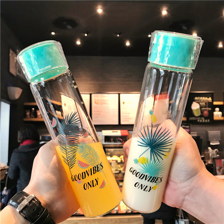 创意简约小清新钻石玻璃杯情侣学生便携水杯韩版透明带盖随手杯子