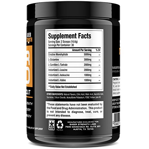 #1 POST WORKOUT SUPPLEMENT - With 5g Creatine Monohydrate, 3g Glutamine, 2g L-Carnitine, and 4g of BCAAs, Sheer Recovery can help you recover faster, build muscle, and add strength