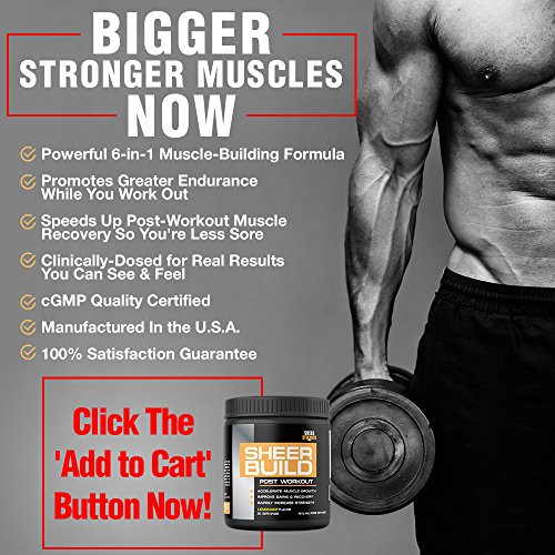 Sheer BUILD Post Workout Supplement - Build Muscle Fast with BCAAs, Creatine Monohydrate, Glutamine, and L-Carnitine, 498 Grams, 30 Day Supply