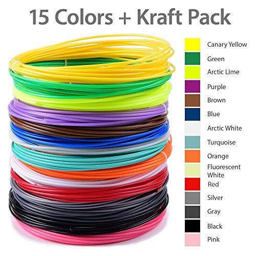 15 charming colors. 300ft 3D Pen Filament Refills. BONUS GLOW IN THE DARK COLOR INCLUDED - 1.75mm ABS. PURE. COLORFUL. FUN. INSIDE.