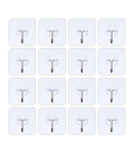 Adhesive Hooks,[16 pack] YoJiSa Ultra Sticky Home Utility Hooks,Transparent Plastic Reusable Heavy Duty Hooks,No Drills waterproof,Storage Wall Coat Hanging Hooks for Kitchen,Bathroom,Towel,Key,Robe