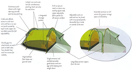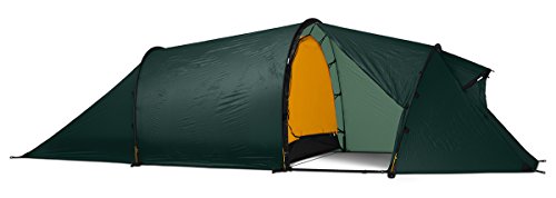 Studio : Hilleberg Publisher : Hilleberg Product Description FEATURES of the Hilleberg Nallo GT 4 Person Tent Outer tent fabric is Kerlon 1200 and the poles are 9mm, which make the tent very lightweight and give added stability to the tent Outer tent walls can be extended to the ground and mesh areas are backed with adjustable fabric panels Tunel construction provides maximum space to weight ratio which is an ideal choice for mobile journey This tent can be used ideally for four people Separable inner and outer tent for simultaneous pitching Tent requires four pegs for pitching, providing quick and remarkably stable setup Single entrance tent with single vestibule configuration allows for easy entrance and storage space Rear outer wall provides better venting options Add on the optional footprint that will cover the entire tent and vestibule and can be left attached to the tent even when pitching Inner tent can be replaced by a mesh inner tent The outer or inner tents can be used separately by moving detachable pole holder from the outer to inner tent Designed for short and long trips in less harsh environments and conditions in all seasons like the forests in winter and summer Great for withstanding heavy storms, but the lighter weight is not ideal on super harsh extended trips Capable of withstanding heavy storm conditions, and the lighter weight is why some experienced hikers take this along instead of a more durable, heavier tent Outer tent goes all the way to the ground for awesome all weather protection Designed using lighter weight zippers and inner tent and floor fabrics to keep the weight at a minimum SPECIFICATIONS of the Hilleberg Nallo GT 4 Person Tent Capacity: 4 Outer Tent Fabric: Kerlon 1200 Minimum Weight: 7 lbs 1 oz / 3.2 kg Packed Weight: 7 lbs 15 oz / 3.6 kg Inner Height: 46" / 115 cm Inner Tent Area: 46.3 square feet / 4.3 square meter Vestibule Area: 34.4 square feet / 3.2 square meter Pole (9 mm): 1 x 144.9, 2 x 129.1" / 1 x 368, 2 x 328 cm Pegs: 20 V-Pegs OVERSIZE ITEM: We cannot ship this product by an 0