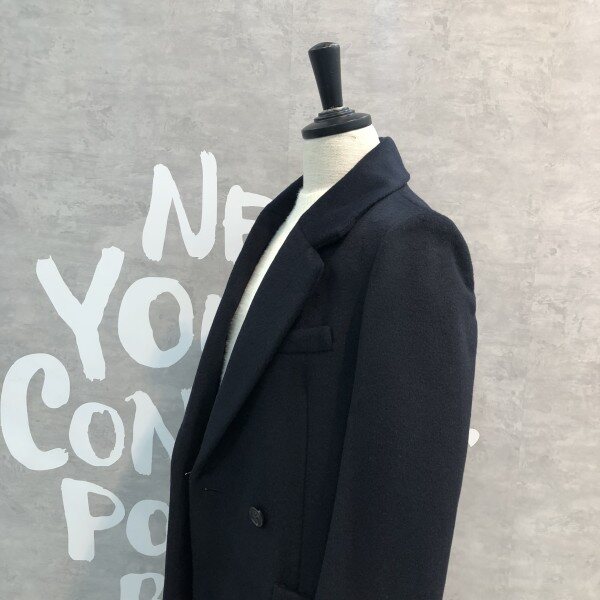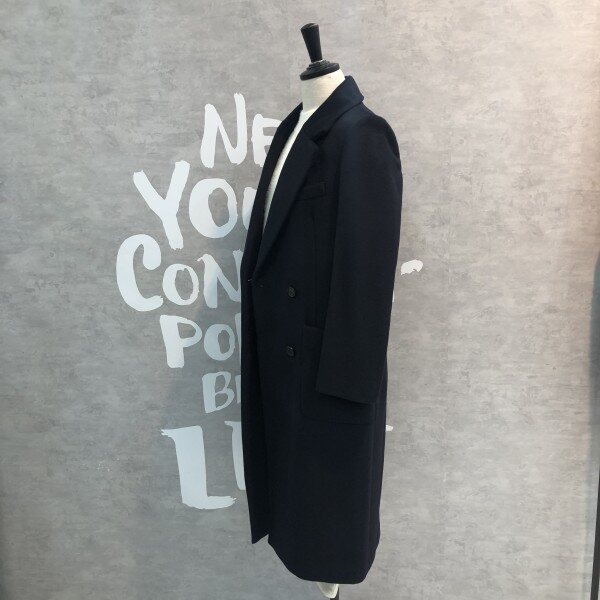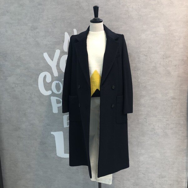 깊은 솔리드 컬러감이 멋스러운 여유있는 더블 브레스트 실루엣의 울코트입니다