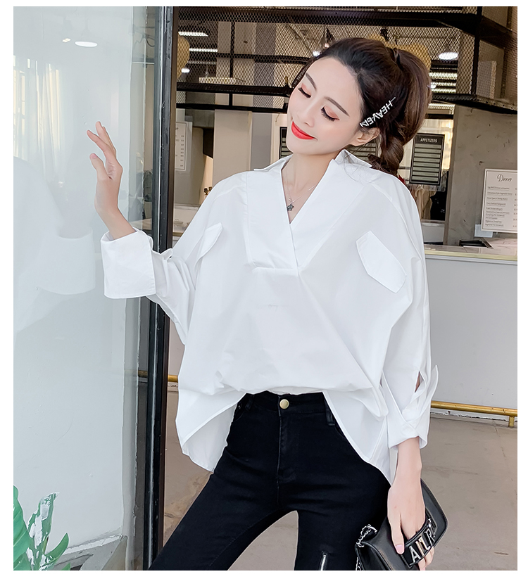 広めに開いた襟元はお顔廻りをスッキリと見せてくれ、ゆったりフォルムで着痩せ効果にも期待ができるのも嬉しいポイントです。