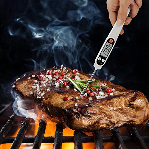 - ALL-PURPOSE INDOOR/OUTDOOR THERMOMETER The Probe Digital Thermometer with protective sheath is easy to carry and store in your kitchen drawer. Perfect for Kitchen, Indoor Grill Pan Cooking, Outdoor Cooking, BBQ, Liquid(such as Coffee,Tea,Homebrew,Milk,Bath Water,Boiling Water etc), Meat & Poultry (Such as Steak,Beef,Lamb,Pork,Chicken,Turkey,Fish), Candy, Food, Cake, Grill Smokers