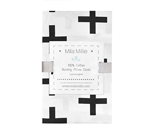 Premium Quality Nursing Pillow Cover by Mila Millie - Nordic Swiss Black Cross Unisex Design Slipcover - 100% Cotton Hypoallergenic - Perfect Baby Shower...