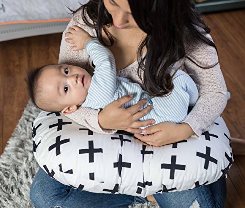 NORDIC BLACK CROSS DESIGN | The slipcovers will provide many fun ways to switch up the looks of your nursing pillow and add an instant charm finishing touches of your nursery. The Nordic black cross pattern is gender neutral, perfect for every parents and babies, and a great baby shower gift.