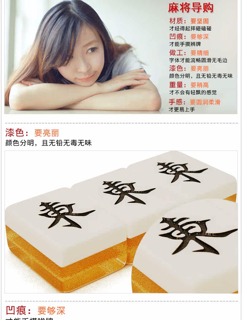 材质:要坚固 才经得起摔砸磕碰 凹痕:要够深才能手摸辨牌