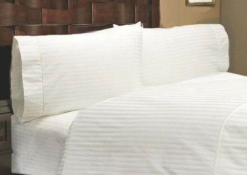500 Thread Count 1 PC Fitted Sheet 100% Egyptian Cotton Stripe White California King 22" Deep Pocket