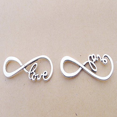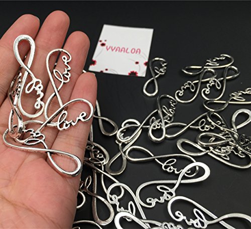 YYaaloa 40pcs 12X39mm Lovely 8 and Love Design Charms Pendants Connector DIY Antique Charms Pendant for Crafting Pack of 40 (8 and Love Design Silver)