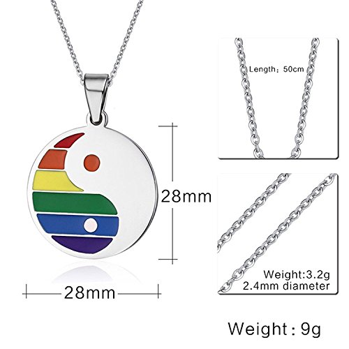 -. Feature : Unisex Stainless Steel Rainbow Yin Yang Pendant Necklace with 22 in Chain / Pendant Size: 1.1"(2.8cm)*1.1"(2.8cm) / Metal: Stainless Steel, 100% Brand New / This Unique Stainless Steel Necklace Jewelry definitely add an impressive trendy touch to your look! / Suitable Gifting Accasion: Valentine's Day;Anniversary;Chrismas;Birthday;Graduation etc.