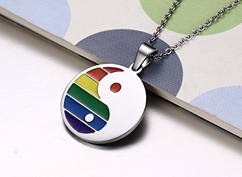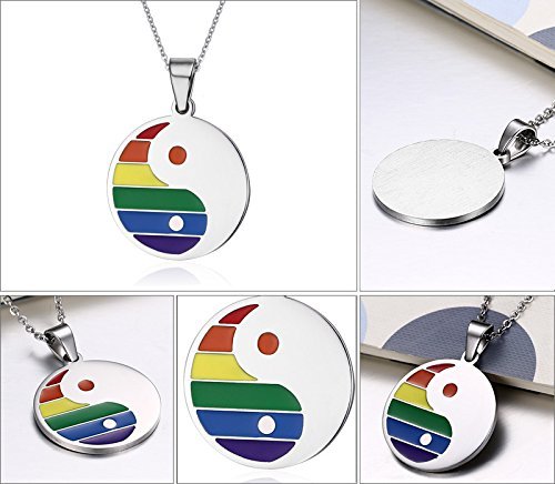 -. Title : Blowin Stainless Steel Rainbow Round Yin Yang Pendant Necklace for Gay & Lesbian P.R.Ide,Free Chain 22 inch