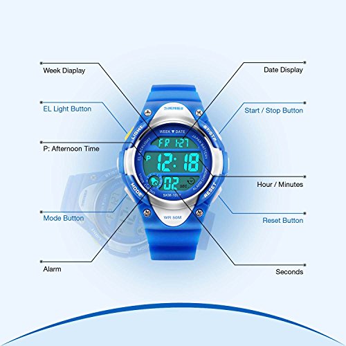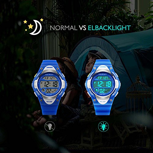 Digital WATCHES: Fashionable sporty dial design for kids ( boys or girls ) , sports style outlook. Large Dial and numbers with light, show time clear in the dark. Use import EL Lamp, Press "LIGHT" button to see the time clearly in the light.