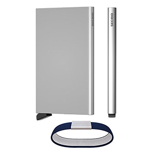 -. Binding : Apparel -. Brand : Secrid -. Color : Silver -. Department : mens -. EAN : 0027829986445 -. Feature : Dimensions: Moneyband 1 x 2.4" (unstretched), Card protector 2.5 x 4.0 x 0.3" / Cardprotector + Moneyband combo / Cardprotector has RFID protection and prevents 6 flat cards or 4 embossed cards from being scratched or bended / Moneyband is for holding or tucking cards and cash around the Cardprotector / Materials: solid aluminum, brushed steel, and rubber -. ProductGroup : Apparel -. ProductTypeName : ACCESSORY -. Size : Slim -. Title : Secrid Aluminum Card Protector + Blue Moneyband with RFID Protection -. UPC : 027829986445