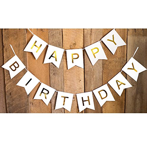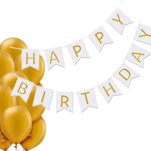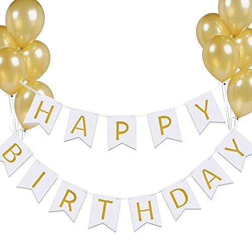 Large White Happy Birthday Banner Gold Balloons - Flag Garland - White Gold Party Products Decoration Kit for Birthday