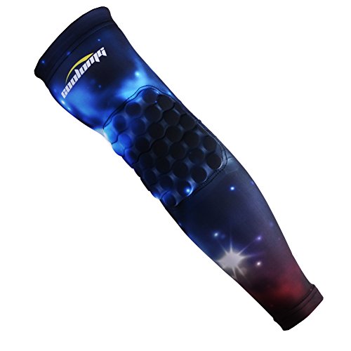 COOLOMG (1 Piece) Youth Adult Power Shooter Arm Sleeve Compression Padded Baseball Basketball Cycling Nebula Sky2 S