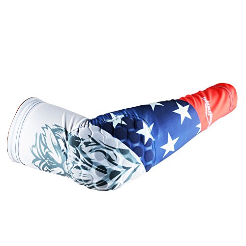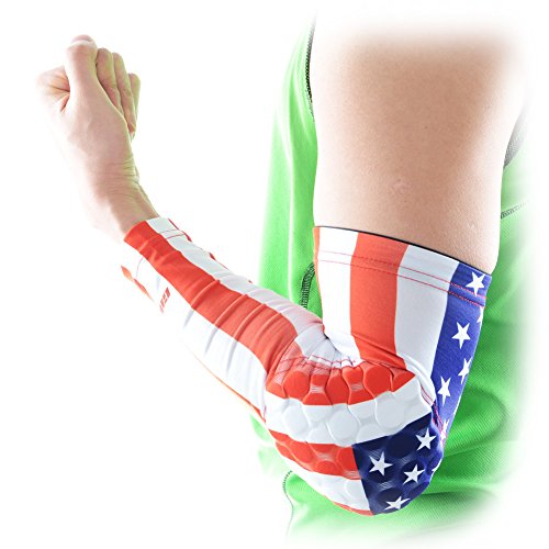 COOLOMG (1 Piece) Youth Adult Compression Padded Basketball Shooter Sleeve Elbow Warmers Arm Protection USA Eagle XL