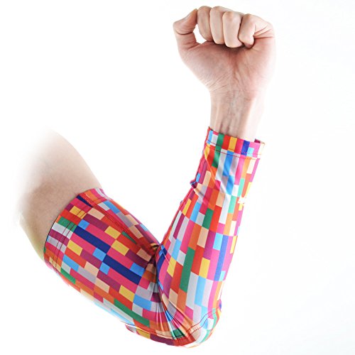 COOLOMG Youth Anti-Slip Arm Sleeves Cover Pad Protector Gear Sports Adult, Rainbow, Medium