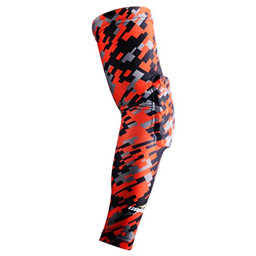 COOLOMG (One Piece) Men Boy Compression EVA Arm Sleeve Pads UV Protection Digital Camo Orange Black Large
