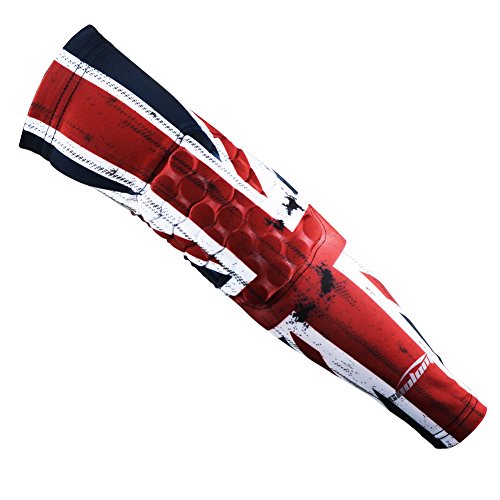 COOLOMG (1 Piece) Youth Adult Compression Padded Basketball Shooter Sleeve Elbow Warmers Arm Protection UK Flag L