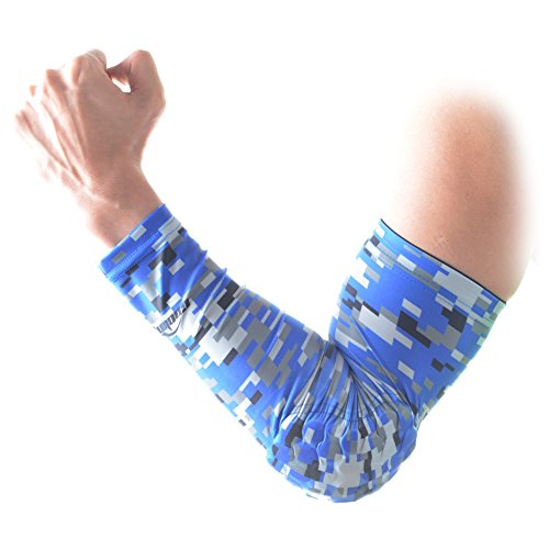 COOLOMG Youth Anti-Slip Arm Sleeves Cover Pad Protector Gear Sports Adult, Camouflage/Blue, X-Large