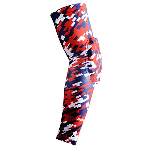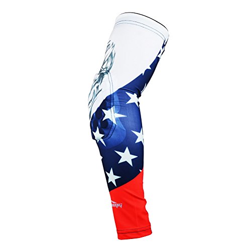 COOLOMG (One Piece) Men Boy Compression EVA Arm Sleeve Pads UV Protection USA Flag Digital Camo Red Blue Large