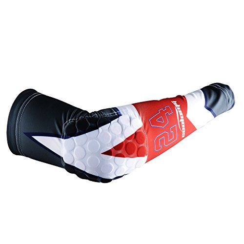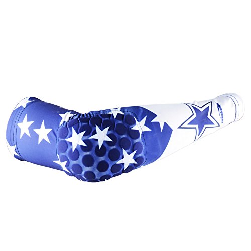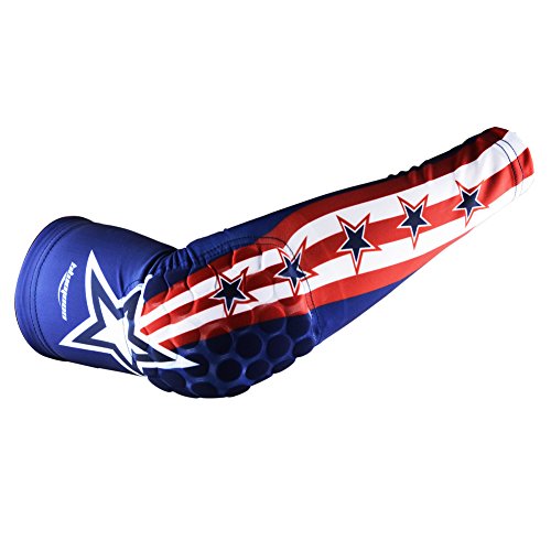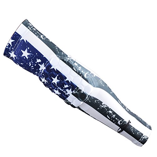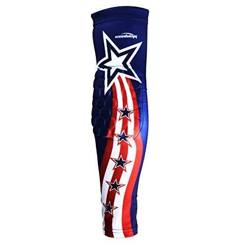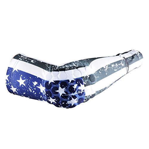 COOLOMG (1 Piece) Youth Adult Compression Padded Basketball Shooter Sleeve Elbow Warmers Arm Protection Blue US Flag L