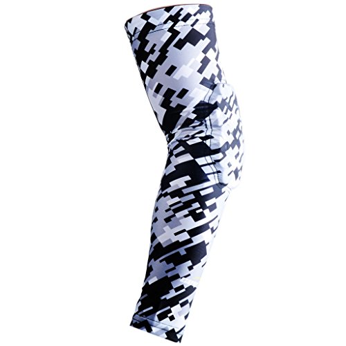 COOLOMG (One Piece) Men Women Compression EVA Arm Sleeve Pads UV Protection Digital Camo Black Gray X-Large