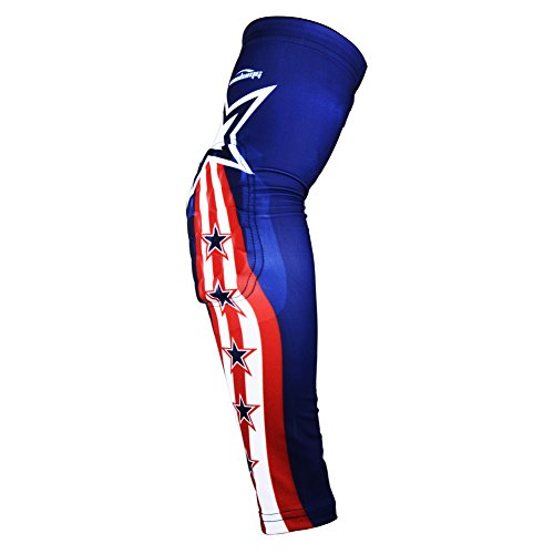 COOLOMG (1 Piece) Youth Adult Compression Padded Basketball Shooter Sleeve Elbow Warmers Arm Protection Blue US Flag XL