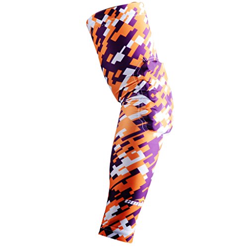 COOLOMG (One Piece) Men Boy Compression EVA Arm Sleeve Pads UV Protection Digital Camo Yellow Purple X-Large