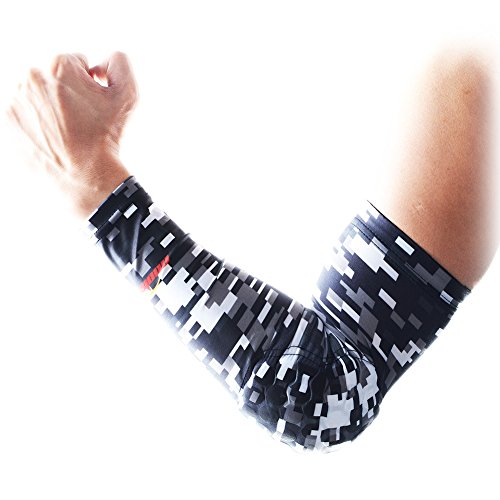 COOLOMG (One Piece) Men Boy Compression EVA Arm Sleeve Pads UV Protection Digital Camo Red Black Large
