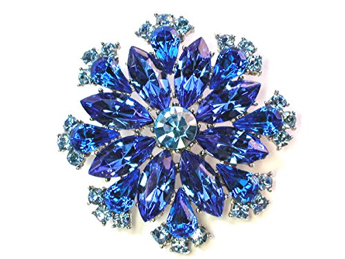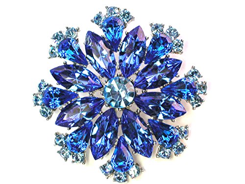 -. Feature : Materials: Rhinestone crystals / Color: Sapphire Blue, Light Blue / Type: Brooch / Pin / Alloy metal: Rhodium plated / Size: 2" in diameter.